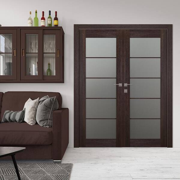 Vona 36"x 80" Left Hand Active 5-Lite Frosted Glass Veralinga Oak Wood Composite Double Prehung French Door