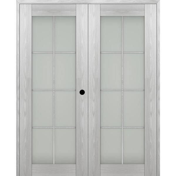 Vona 36"x 80" Left Hand Active 8-Lite Frosted Glass Ribeira Ash Wood Composite Double Prehung French Door
