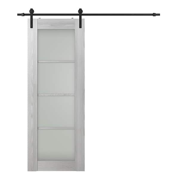 Vona 4-Lite 28 in. x 84 in. 4-Lite Frosted Glass Ribeira Ash Wood Composite Sliding Barn Door with Hardware Kit