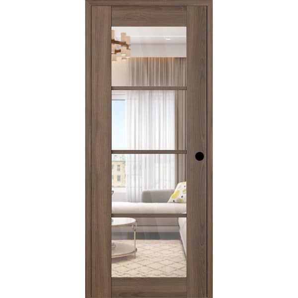 Vona 4 Lite DIY-Friendly 28 in. x 80 in. Left-Handed Clear Glass Pecan Nutwood Composite Single Prehung Interior Door
