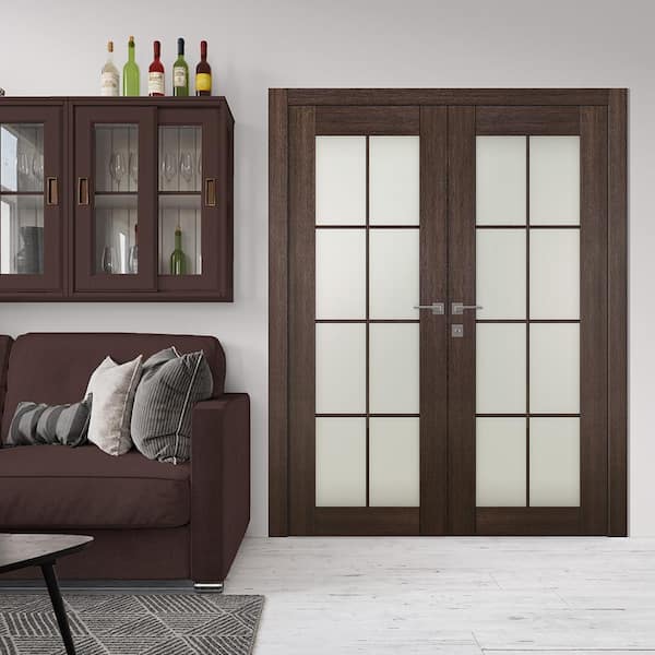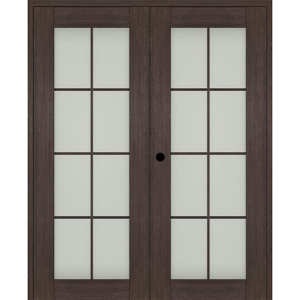 Vona 48"x 96" Right Hand Active 8-Lite Frosted Glass Veralinga Oak Wood Composite Double Prehung French Door