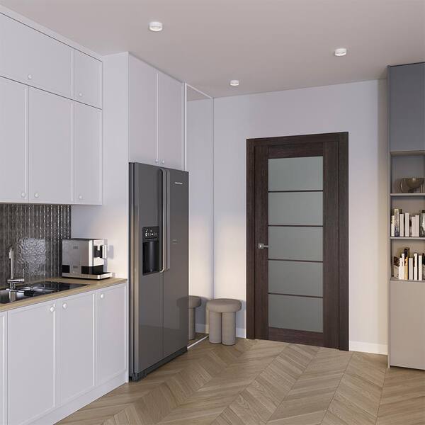 Vona 5 Lite 28 in. x 96 in. No Bore Solid Core Veralinga Oak Wood And Frosted Glass Composite Interior Door Slab