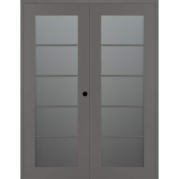 Vona 5-Lite 36 in. x 80 in. Left Active 5-Lite Frosted Glass Gray Matte Wood Composite Double Prehung Interior Door