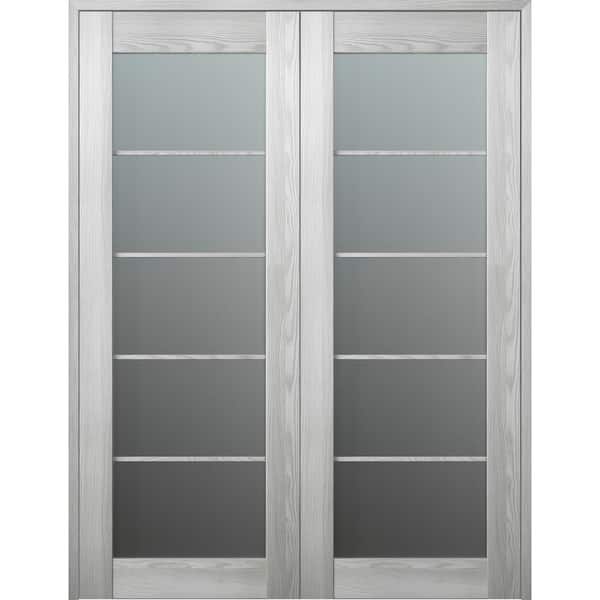 Vona 5 Lite 48 in.x 84 in. Both Active Frosted Glass Ribeira Ash Wood Composite Double Prehung French Door