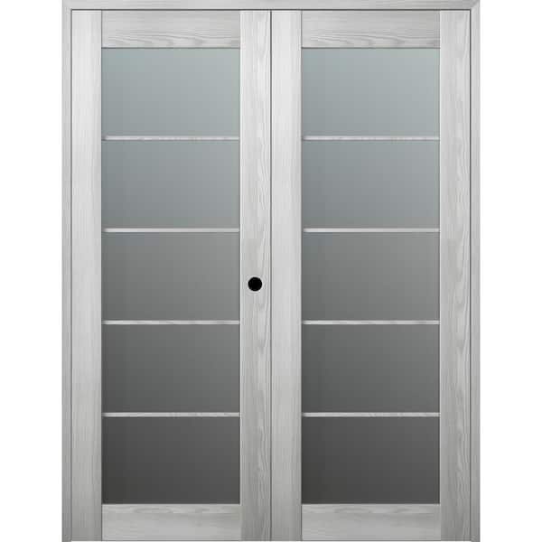 Vona 5 Lite 60 in.x 96 in. Left Hand Active Frosted Glass Ribeira Ash Wood Composite Double Prehung French Door