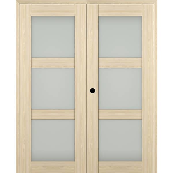 Vona 56"x 80" Right Hand Active 3-Lite Frosted Glass Loire Ash Wood Composite Double Prehung French Door