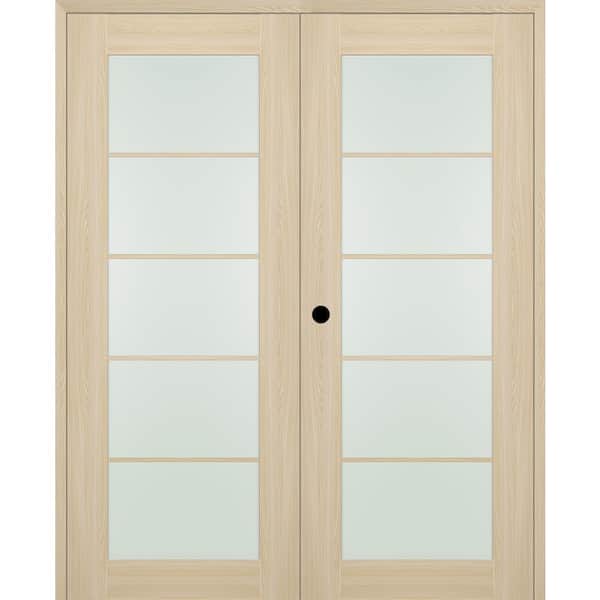 Vona 60 in. x 84 in. 5-Lite Right Hand Active Frosted Glass Loire Ash Wood Composite Double Prehung French Door