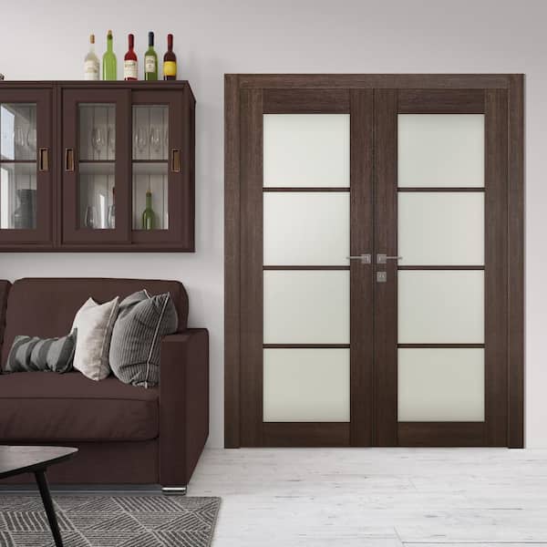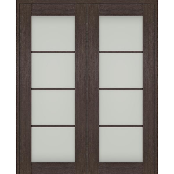 Vona 60"x 96" Both Active 4-Lite Frosted Glass Veralinga Oak Wood Composite Double Prehung French Door