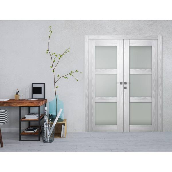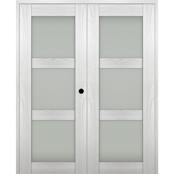 Vona 64"x 80" Left Hand Active 3-Lite Frosted Glass Ribeira Ash Wood Composite Double Prehung French Door