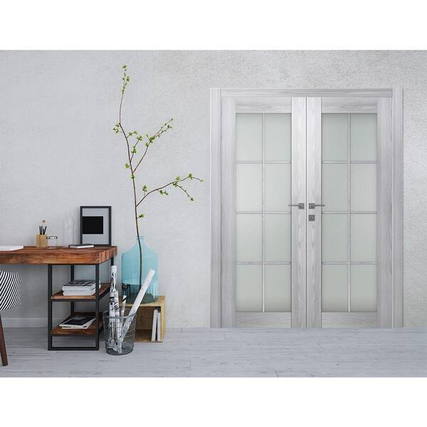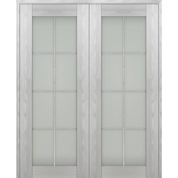 Vona 64"x 84" Both Active 8-Lite Frosted Glass Ribeira Ash Wood Composite Double Prehung French Door