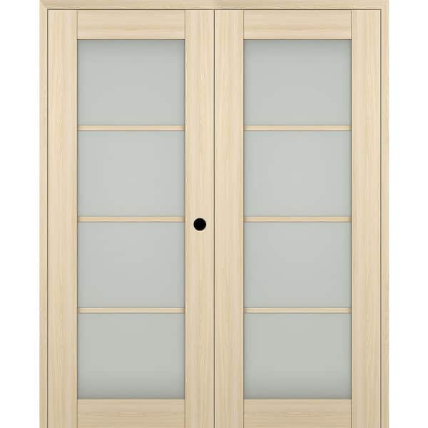 Vona 72"x 80" Left Hand Active 4-Lite Frosted Glass Loire Ash Wood Composite Double Prehung French Door