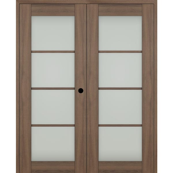 Vona 72"x 80" Left Hand Active 4-Lite Frosted Glass Pecan Nutwood Wood Composite Double Prehung French Door
