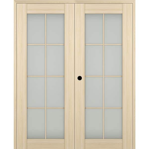 Vona 72"x 80" Right Hand Active 8-Lite Frosted Glass Loire Ash Wood Composite Double Prehung French Door