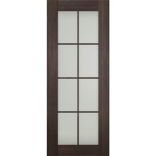 Vona 8-Lite 36 in. x 84 in. No Bore Solid Core Frosted Glass Veralinga Oak Prefinished Composite Wood Interior Door Slab