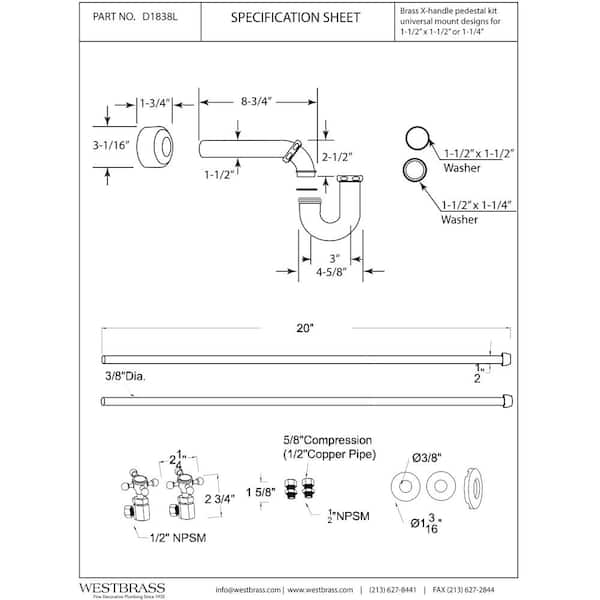 • Kit is ideal for use with 1-1/4 in. and 1-1/2 in. drain inlets