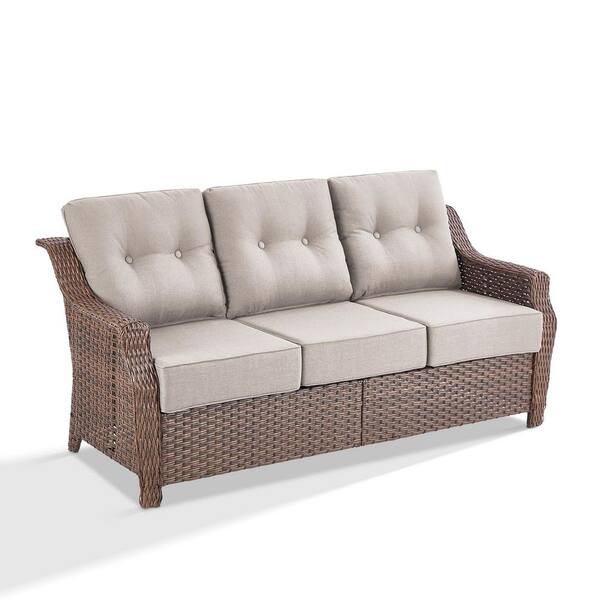 Circle 3-Seat Brown Wicker Outdoor Couch Patio Sofa with High Curvy Back, and 6 in. Thick Beige Cushions