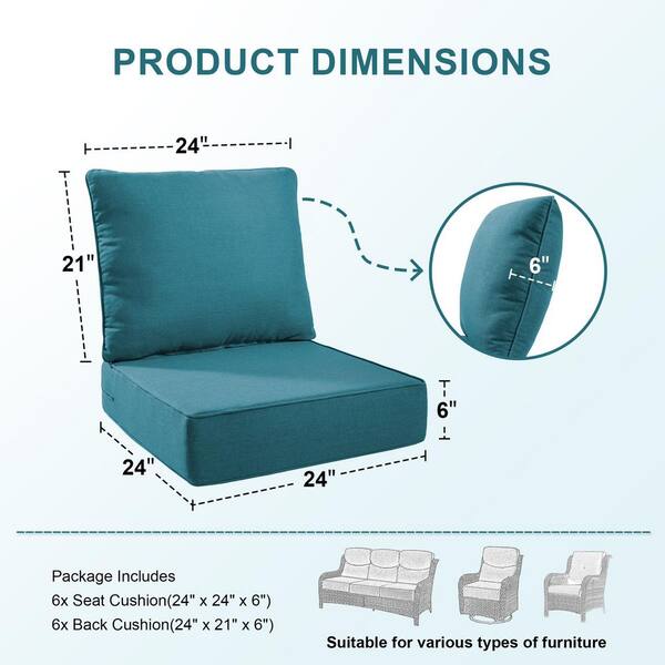 Duraolex 24 in. W x 24 in. D x 6 in. Thick Square 12-Piece Deep Seating Outdoor Lounge Chair Olefin Cushion Peacock Blue
