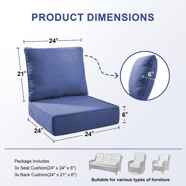 Duraolex 24 in. W x 24 in. D x 6 in. Thick Square 6-Piece Deep Seating Outdoor Lounge Chair Olefin Cushion in Blue