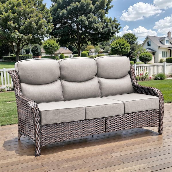NovaSwivel Brown Wicker Patio Couch, Outdoor Sofa with High Back, and 6 in. Thick Beige Cushions for Backyard, Porch