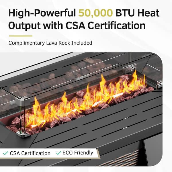 Rotavia Brown Wicker 7-Piece Outdoor Rectangular Fire Pit Table Patio Conversation Swivel Chair Set with Blue Cushions
