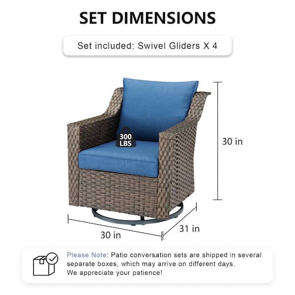Thrive 4-Piece Brown Wicker Outdoor Rocking Chair Patio Furniture Swivel Glider Set Deep Seating with Blue Cushions