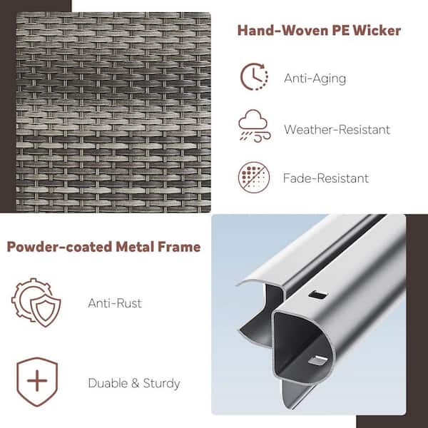UvaNest 5-Piece Gray Wicker Patio Fire Pit Conversation Set with Blue Cushions and Outdoor Swivel Rocking Chair