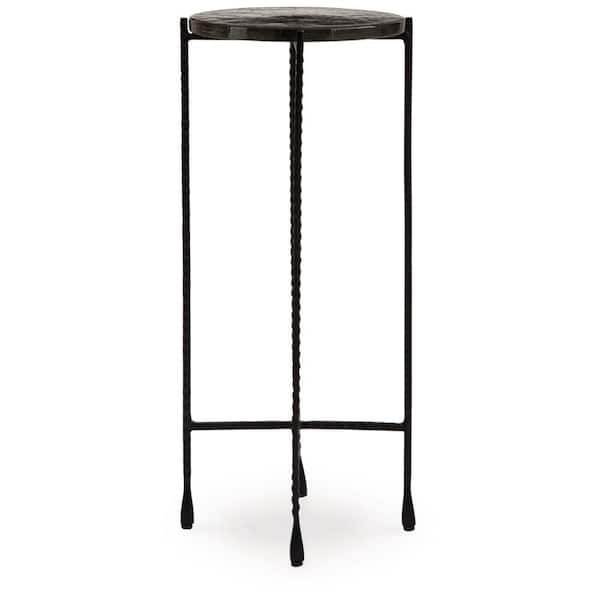 10 in. Black Round Metal End Table with Forged Iron Legs