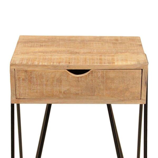 14 in. Brown and Black Rectangle Wood End Table with 1 Drawer and Shelf