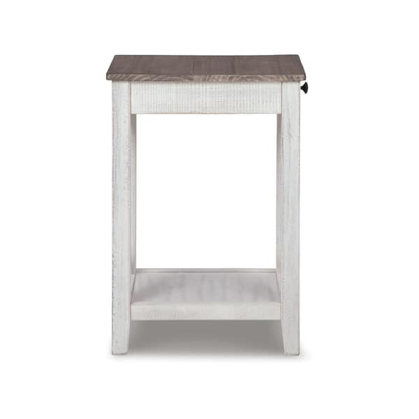 14 in. Distressed White and Gray Rectangle Wooden End Table with 1 Drawer and Shelf