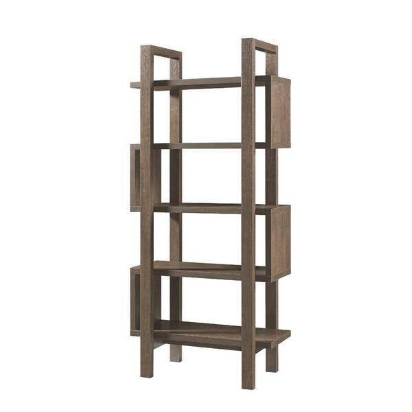 14 in. Tall Brown Wood 5-Shelf Standard Bookcase with Zig Zag Pattern