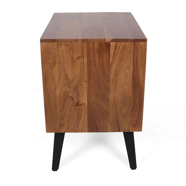 15.5 in. Brown and Black Rectangular Wood Top End Table