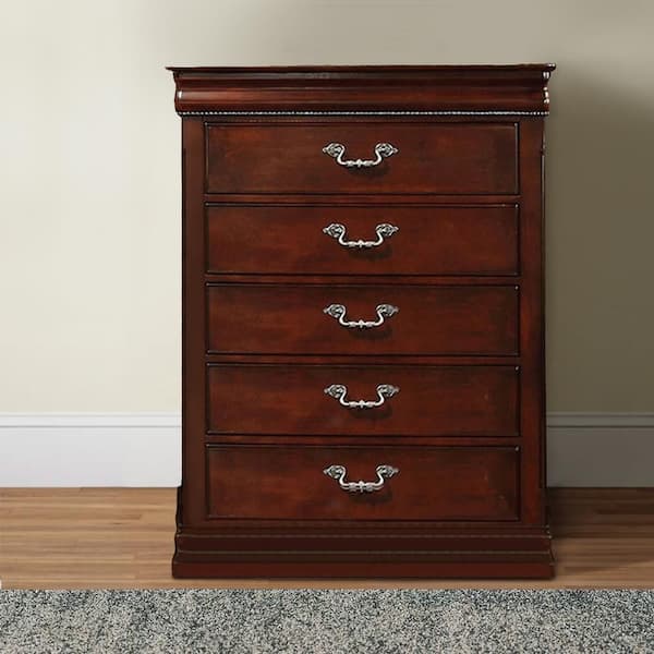 15.5 in. Cherry 5-Drawer Wooden Chest of Drawers