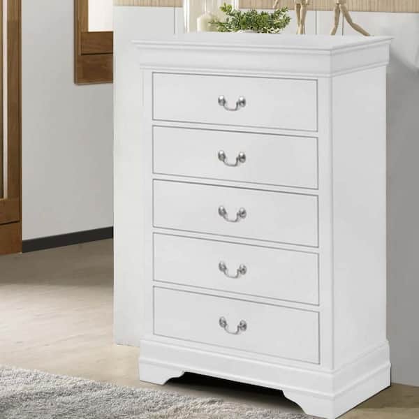 15.5 in. White 5-Drawer Wooden Chest of Drawers