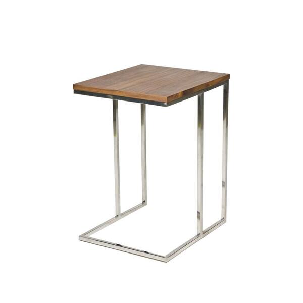 15 in. Brown and Chrome Square Wood Top End/Side Table with Tray Top