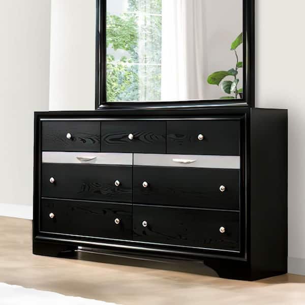 16.625 in. Black 7-Drawer Wooden Dresser Without Mirror
