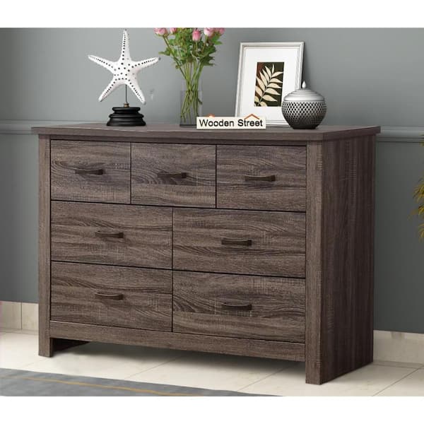 16 in. Oak Gray 7-Drawer Wooden Dresser Without Mirror