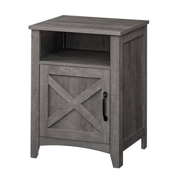 17.72 in. Gray and Black 0-Drawer Wooden Nightstand