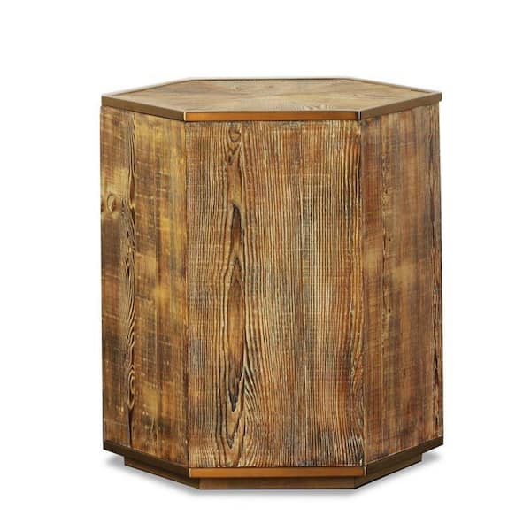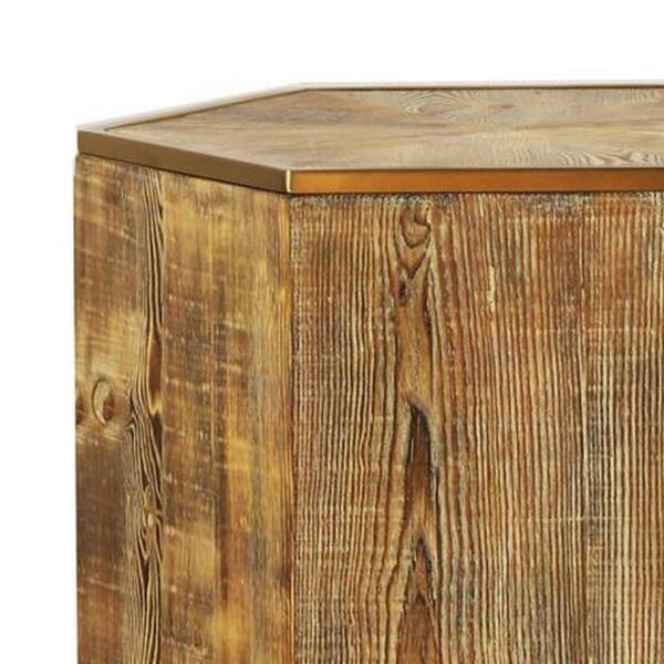 18 in. Brown and Brass Hexagon Wood End Table with Pedestal Base