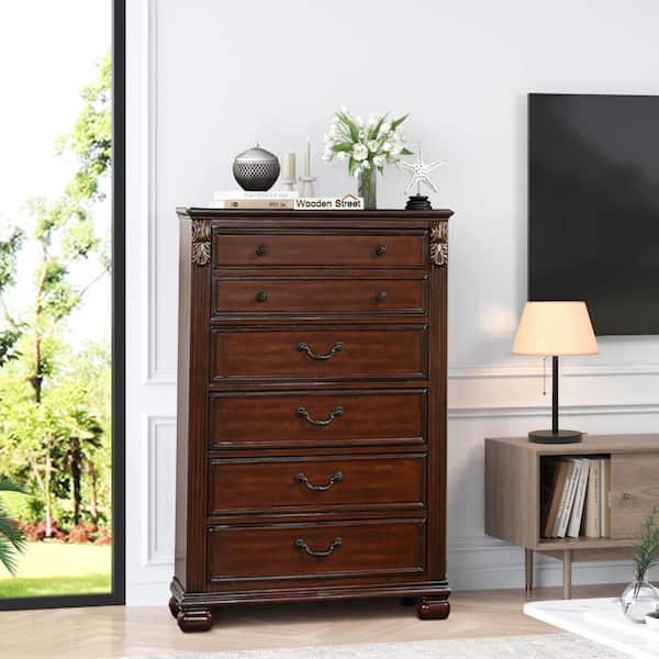 18 in. Cherry Oak Brown 6-Drawer Wooden Tall Dresser Chest of Drawers