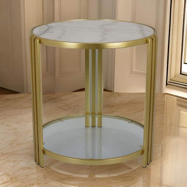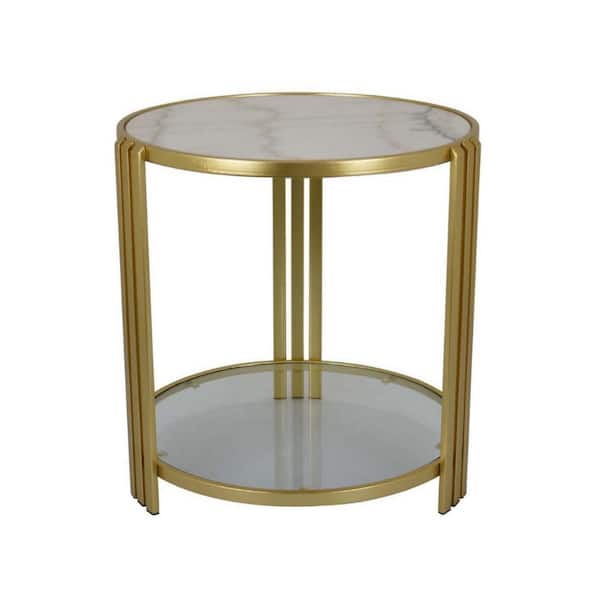 19.75 in. White and Gold Round Tile Plant Stand with 1-Tier