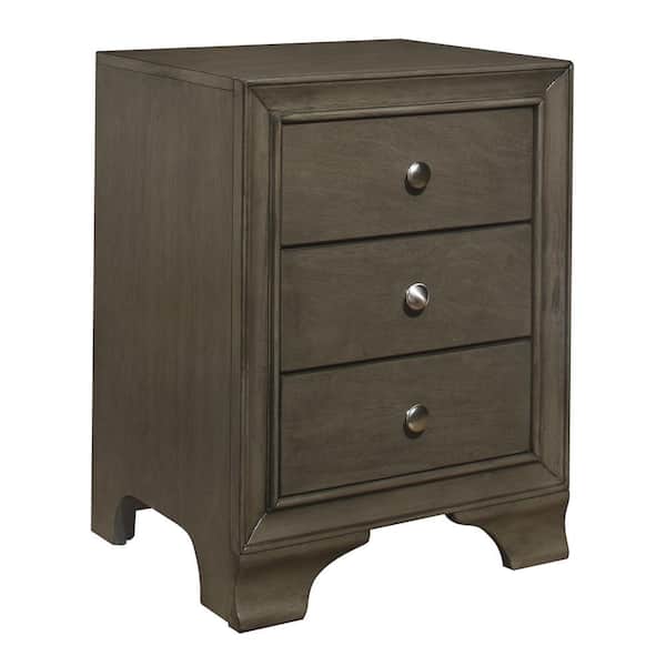 19 in. Gray and Chrome 3-Drawers Wooden Nightstand