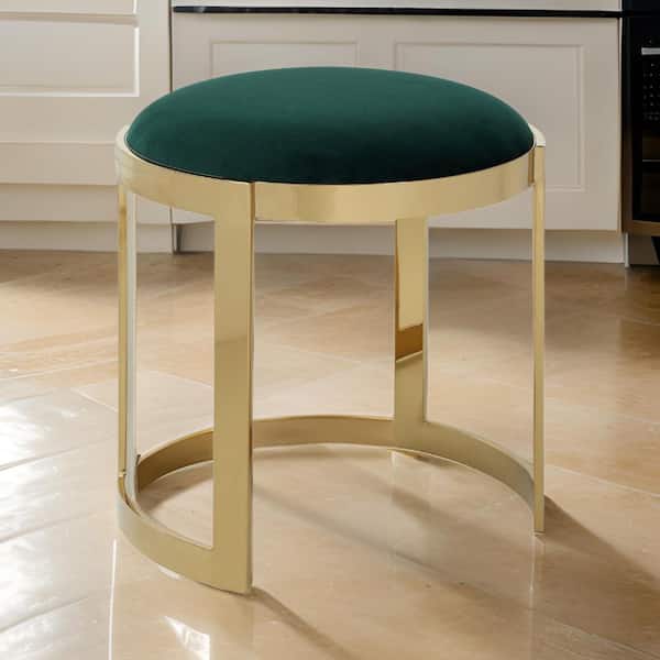 19 in. Green and Gold Low Back Metal Accent Stool with Velvet Seat