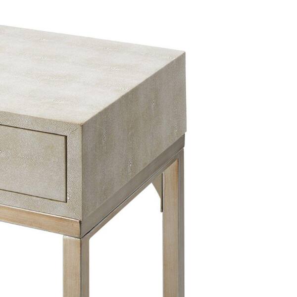 19 in. White Rectangle Faux Leather End Table with Metal Base