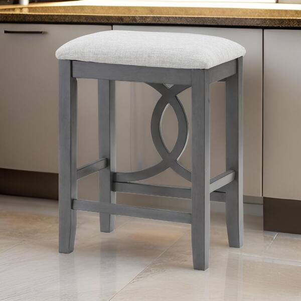 20.25 in. Gray and Brown Backless Wood Frame Bar Stool with Polyster Seat (Set of 2)