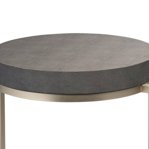 20.5 in. Gray and Silver Round Fabric End Table with Metal Frame