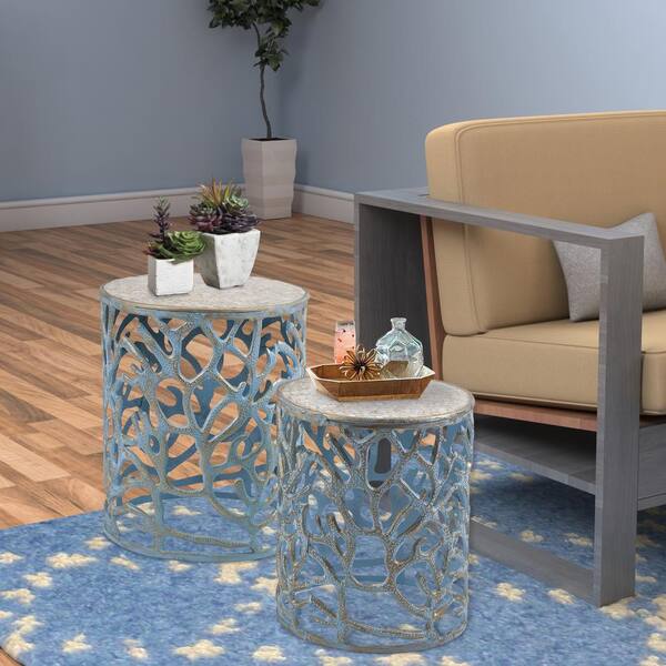20 in. Height Round shaped Aluminium Matte Light Blue Cylindrical Outdoor Side Tables (Set of 2)