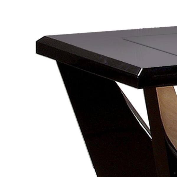 22 in. Black Rectangle Glass End Table with Geometric Base