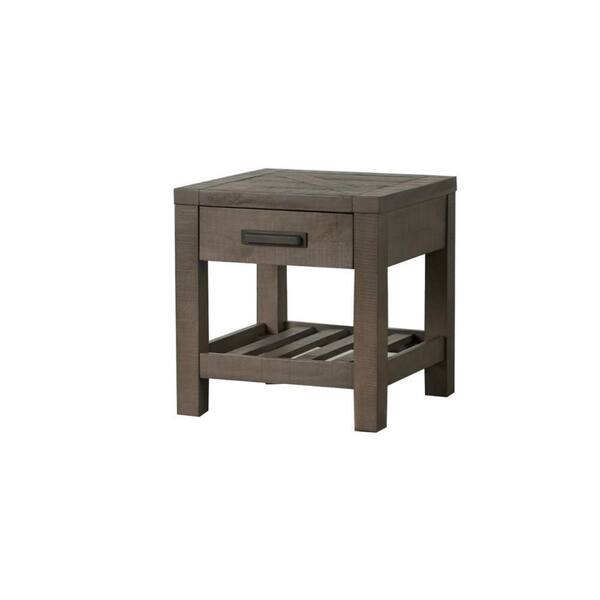 22 in. Gray Square Wood End Table with 1-Drawer and Shelf