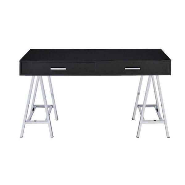 22 in. Rectangular Black and Chrome Wood Top 2-Drawer Writing Desk with Metal Legs