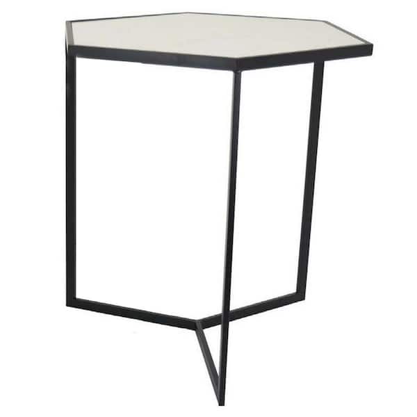23.25 in. White and Black Hexagonal Marble Plant Stand with 1 Tier (Set of 2)